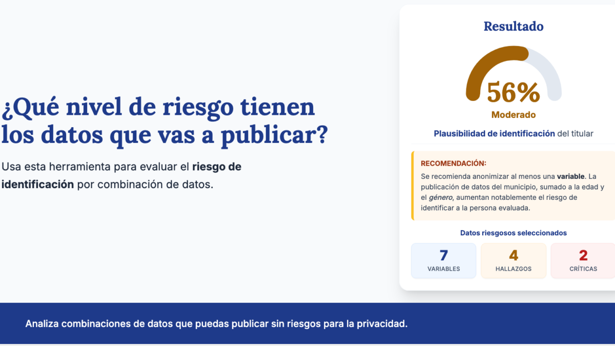 abril 7, 2026Compartimos un nuevo artefacto: “Evaluador de Riesgo de Identificación por Combinación de Datos” (hecho con Claude 🙂 )
